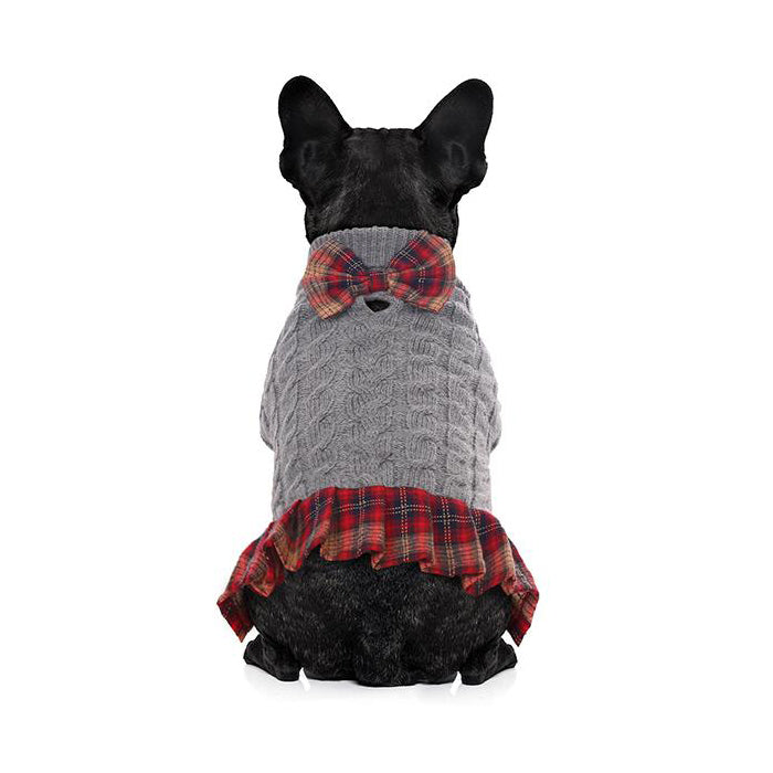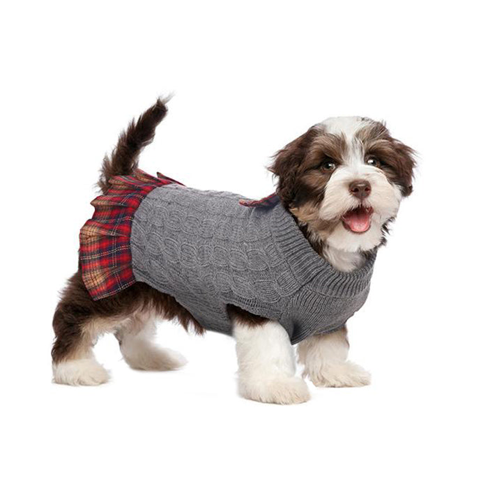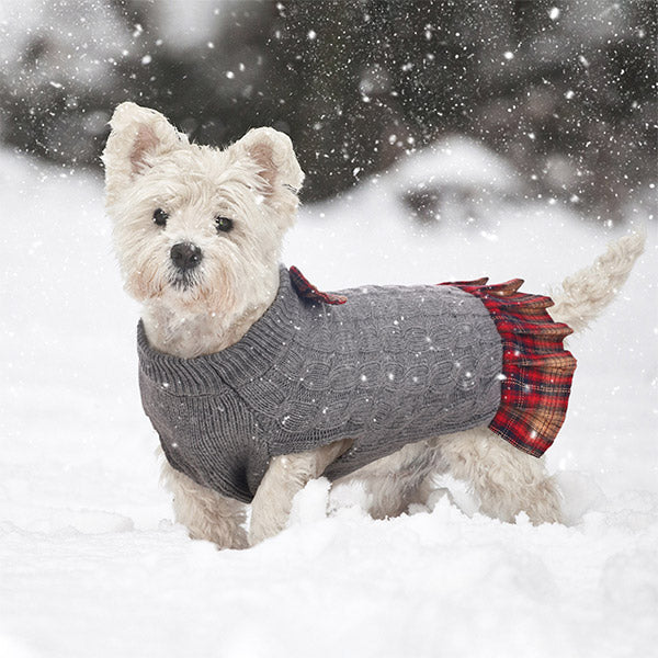 - Dog sweater dress design. classic plaid pattern. The dog's winter clothes suit all small. medium. or large dogs such as beagle. poodle. bulldog. labrador. pitbull. french bulldog. golden retriever. teddy. chihuahua.