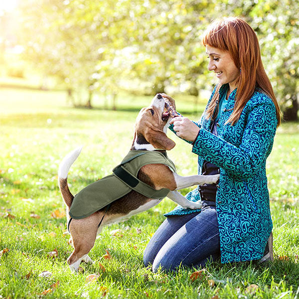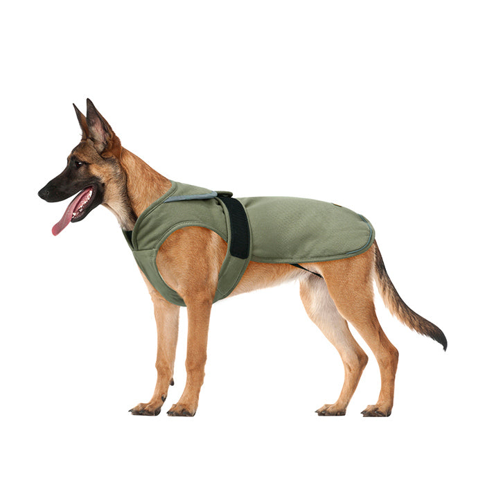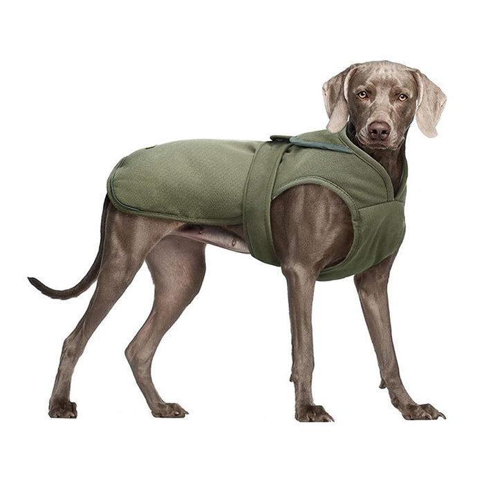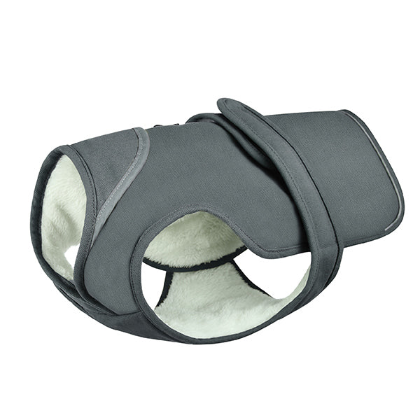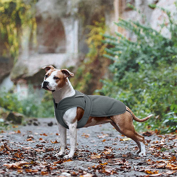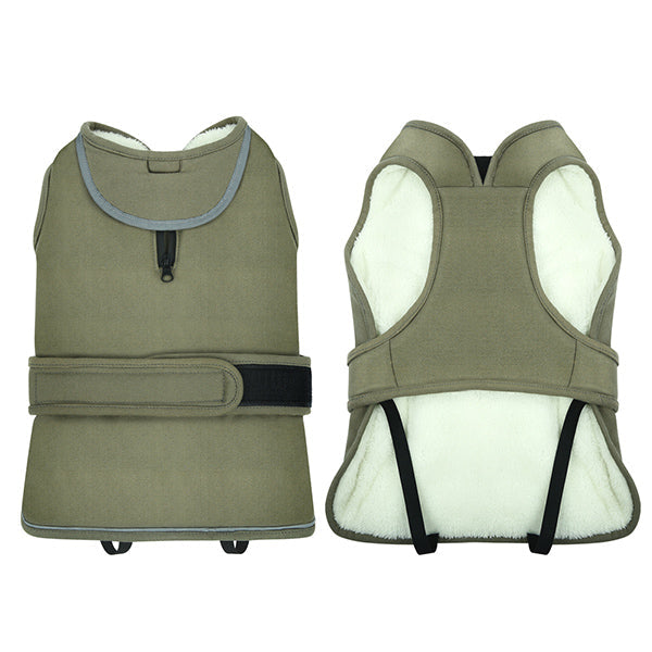 This thick fleece and canvas coat jacket for dogs is specially made for cold weather. The 100% cotton water-resistant canvas outer is windproof and snowproof. while the fleece inner is soft and warm but breathable. The hook & loop closure design makes it super easy to put on & off. It comes with a leash hole on the top of the neck for collar & leash attachment. The protective guard fabric under the zipper prevents the trouble of fur pinch. Reflective band on neck and back. letting your pup be highly visible in low-light environments.