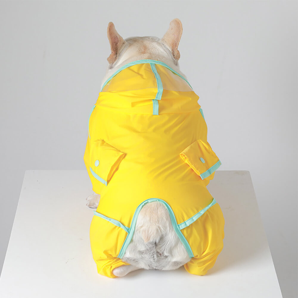 Bulldog raincoats keep pets dry and comfortable in wet weather. This dog raincoat allows longer outdoor playtime for your dog when it's raining.