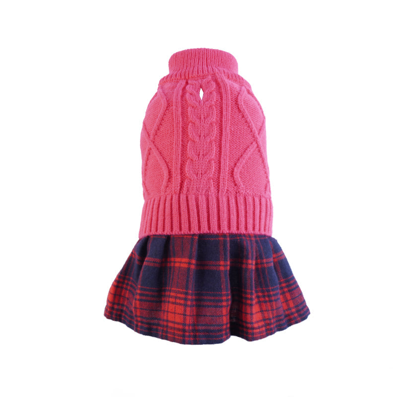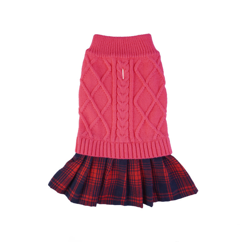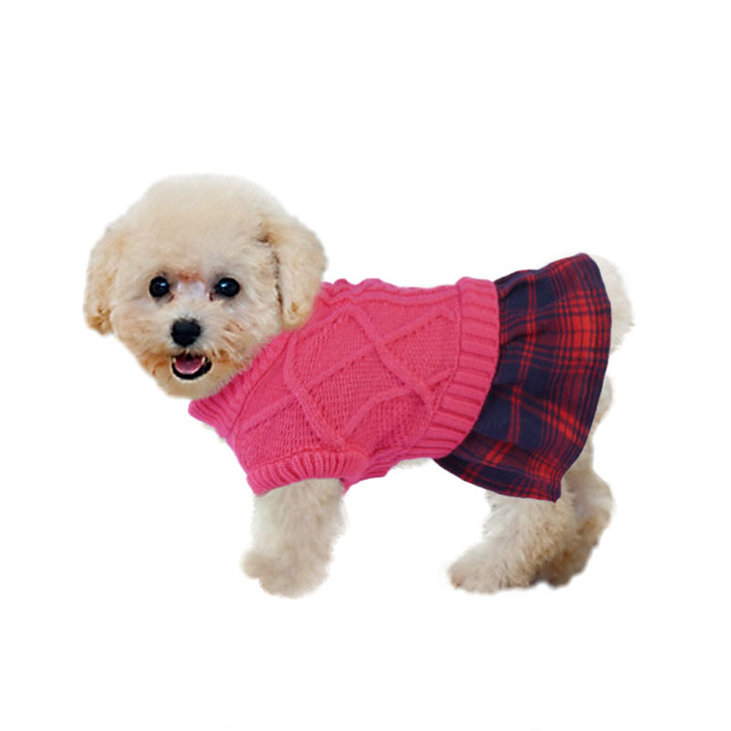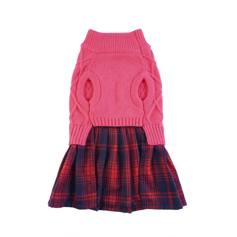 Knit Dog Sweater Stitching Classic Plaid Skirt