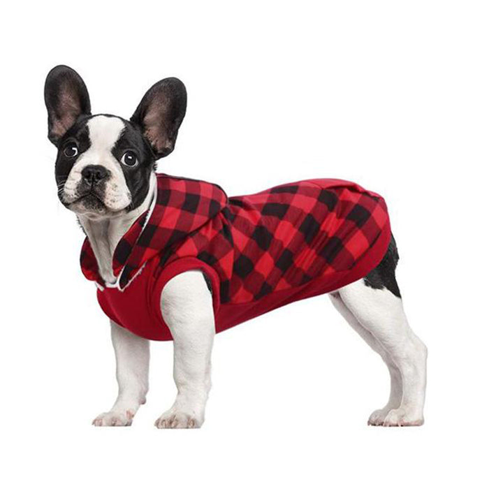 Plaid Fleece Lining Dog Hoodie