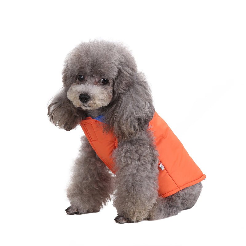 - The pet jacket has bright colors on both sides and can be worn on both sides.