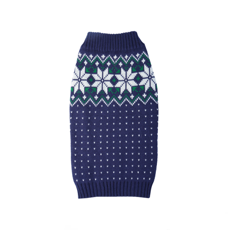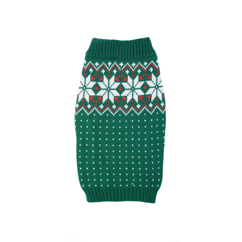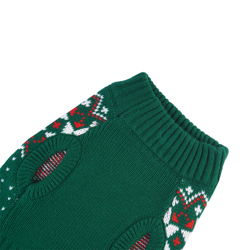 - The sweater pattern uses Christmas elements octagonal flowers.
